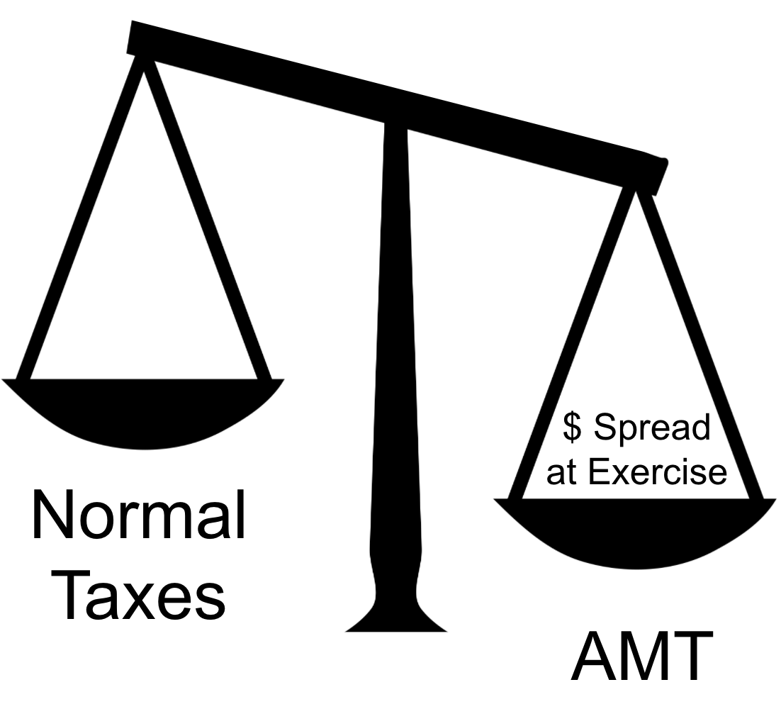 It’s on the AMT side of the equation that ISO exercise activity is accounted for. Eventually after exercising enough ISOs with a positive spread, you’ll tip the scales of the calculation to the point that you’ll trigger AMT tax vs regular income tax.