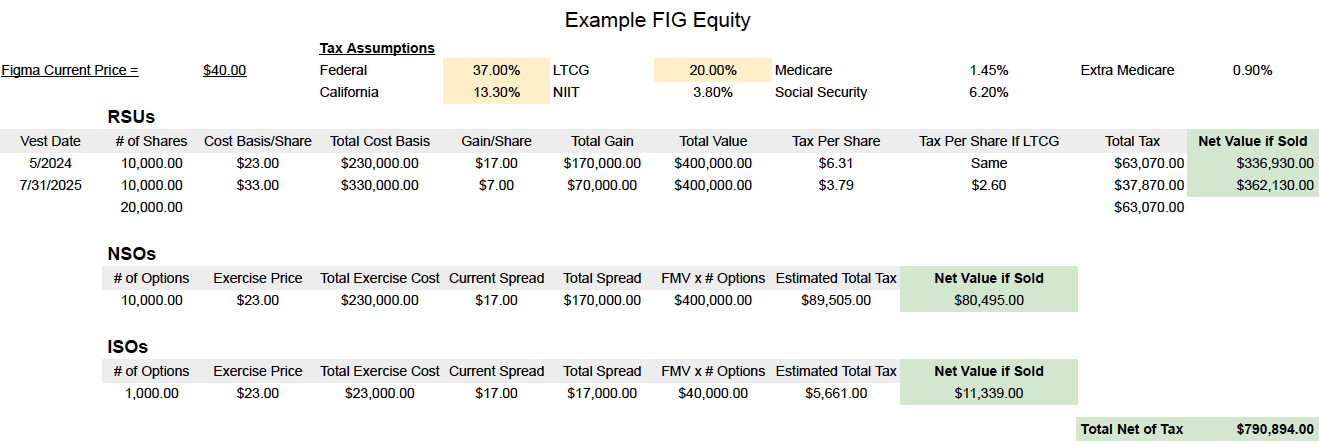 First, depending on when you started at Figma, your RSUs may have vested in June of 2024 during the tender offer. This kind of complicates things, but if you have shares from RSUs that vested from that event, it’s likely to have been of benefit to you. (We’ll get into why later.).
